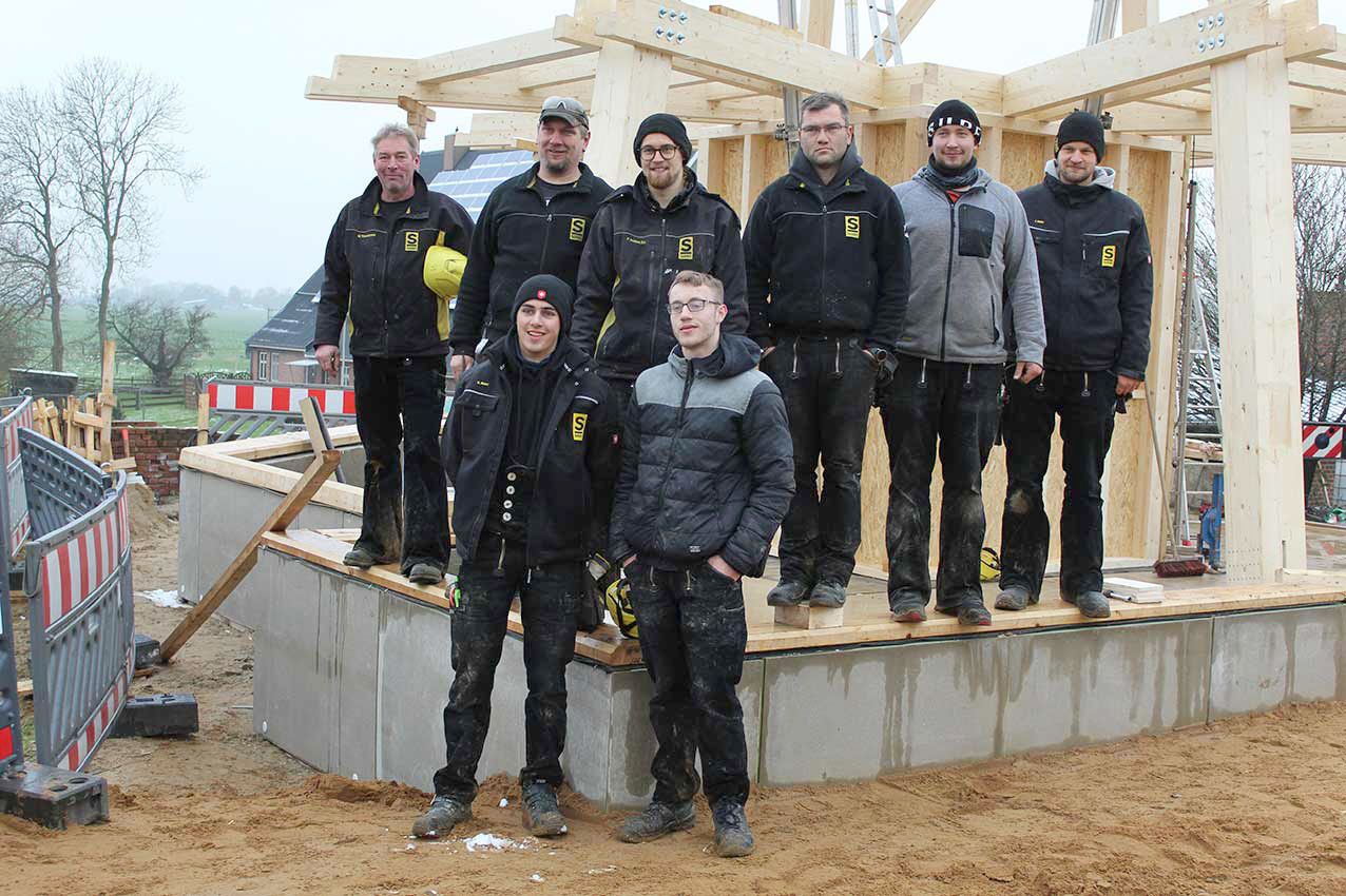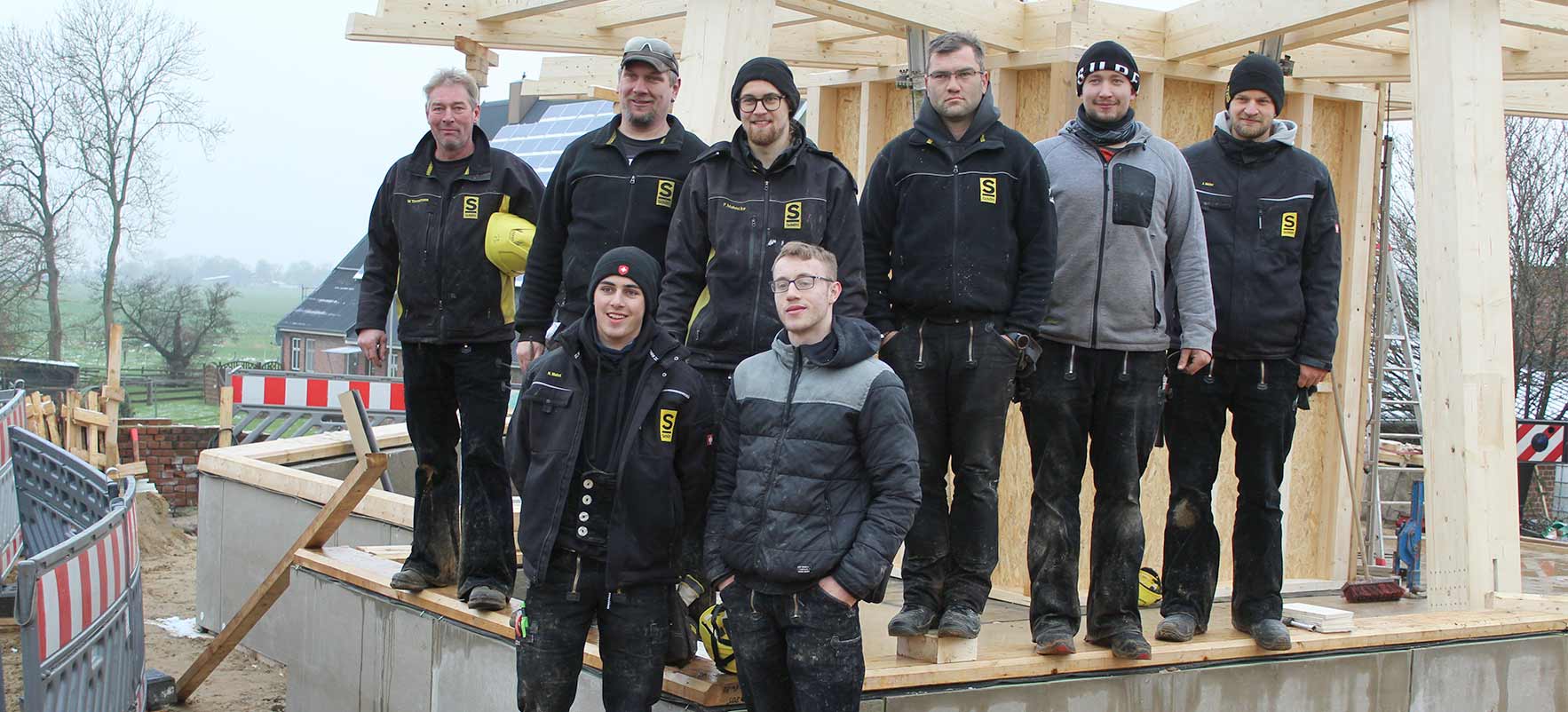 Unter Anleitung lernen und bauen unsere Auszubildenden an einem eigens für sie ausgewählten Bauvorhaben von Anfang bis Ende. So werden in der Praxis viele verschiedene handwerkliche Fähigkeiten erlernt und es wird nicht langweilig. Wenn das Bauvorhaben dann fertig ist, kann mit Stolz behauptet werden: Das haben wir gebaut.