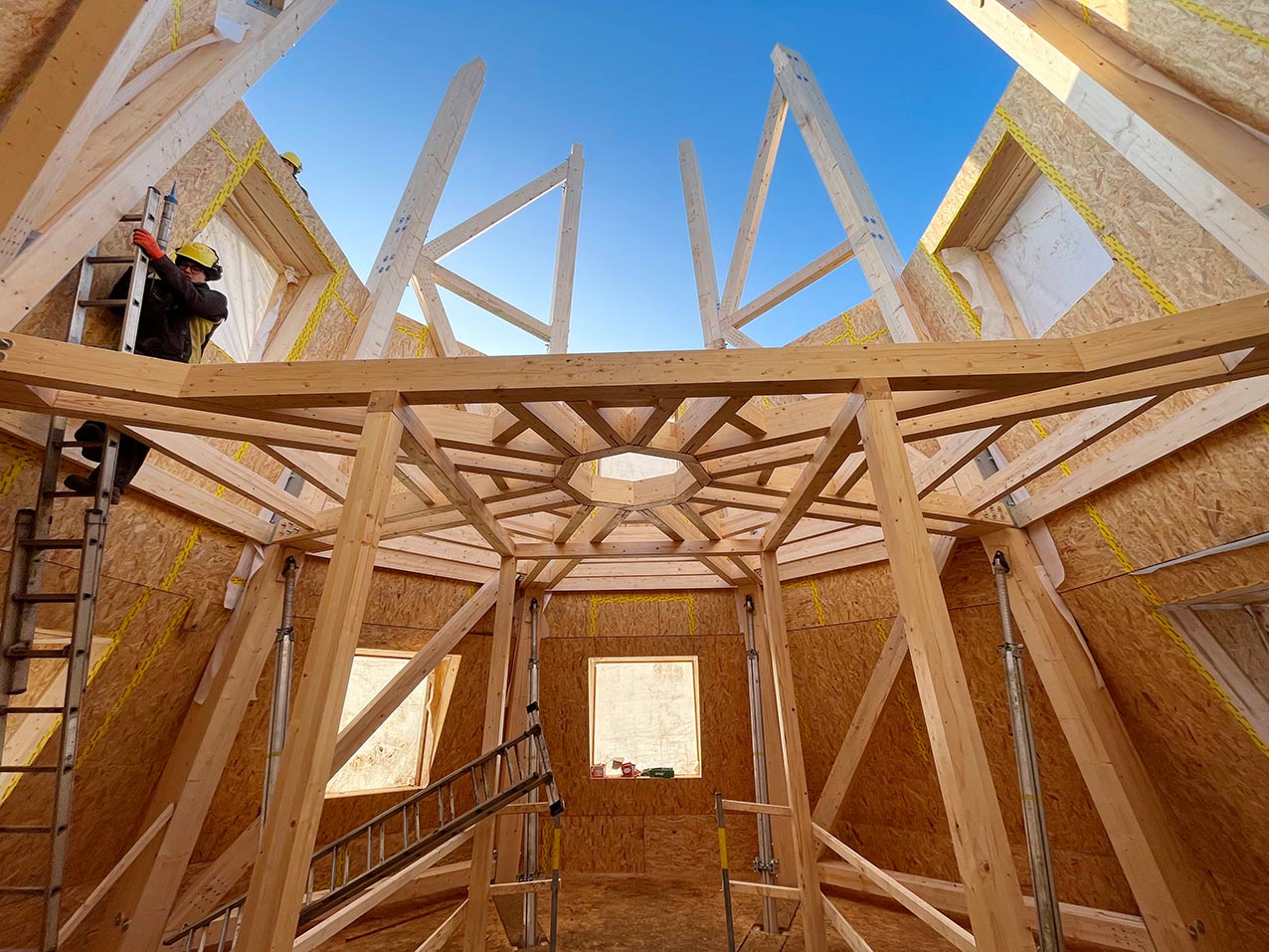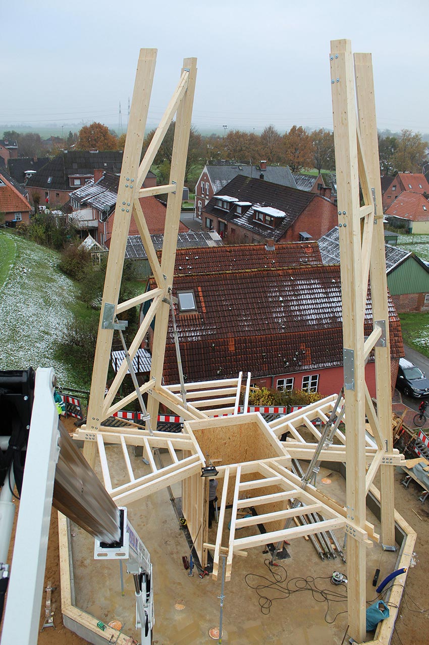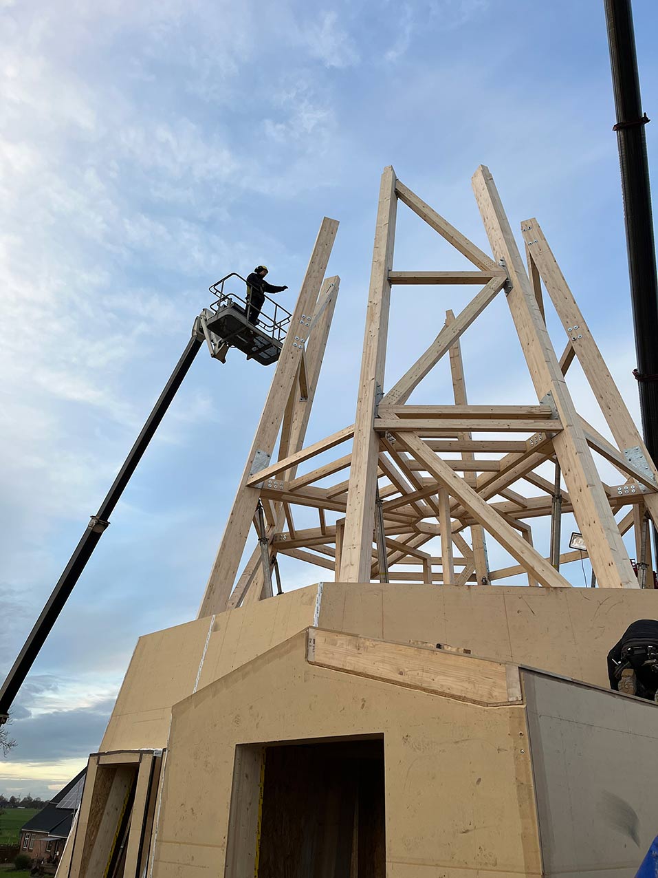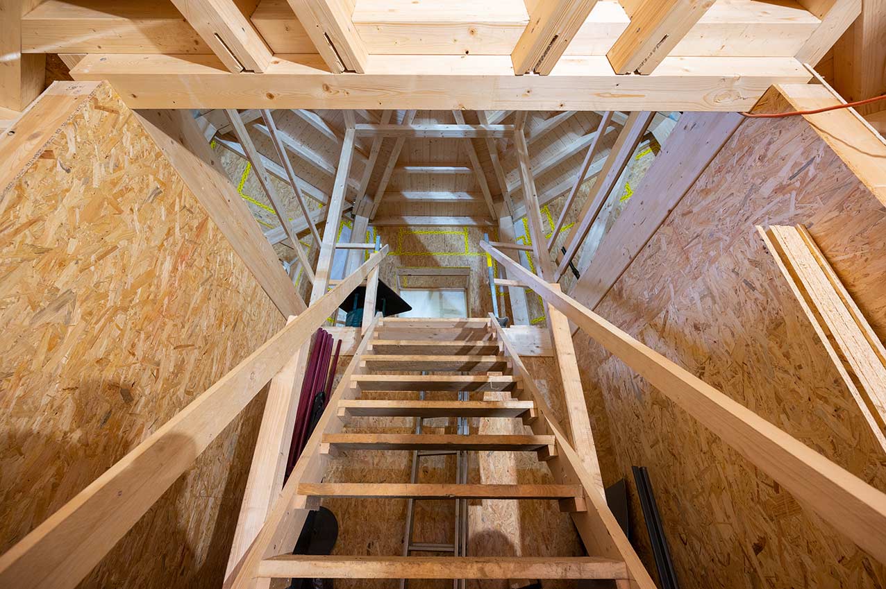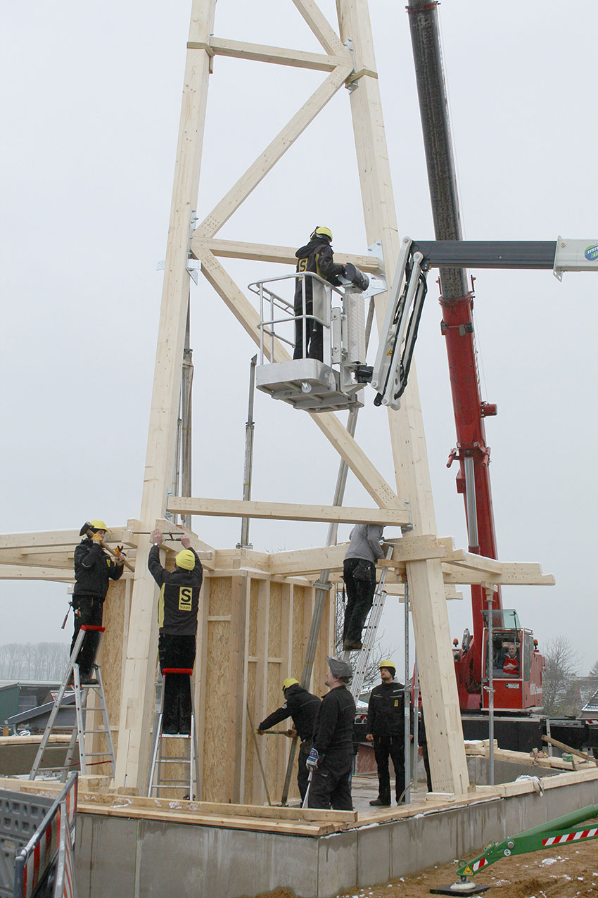 Die moderne Architektur verlangt immer mehr nach außergewöhnlichen Holzkonstruktionen. Genau dafür sind unsere Zimmerer Spezialisten. Während der Ausbildung lernst du, komplizierte Baupläne zu verstehen und sich die Zeichnungen räumlich vorzustellen. Mit Zimmererhammer, Lot, Wasserwaage und anderen Spezialwerkzeugen geht es dann an die Arbeit. Zimmerer fehlen auf keiner unserer Baustellen und übernehmen einen Großteil der Arbeit. Nicht nur beim Errichten von Dachstühlen, sondern auch bei der Produktion und Montage von elementierten Bauteilen und Brettschichtholzbindern sind sie bei uns gefragt.