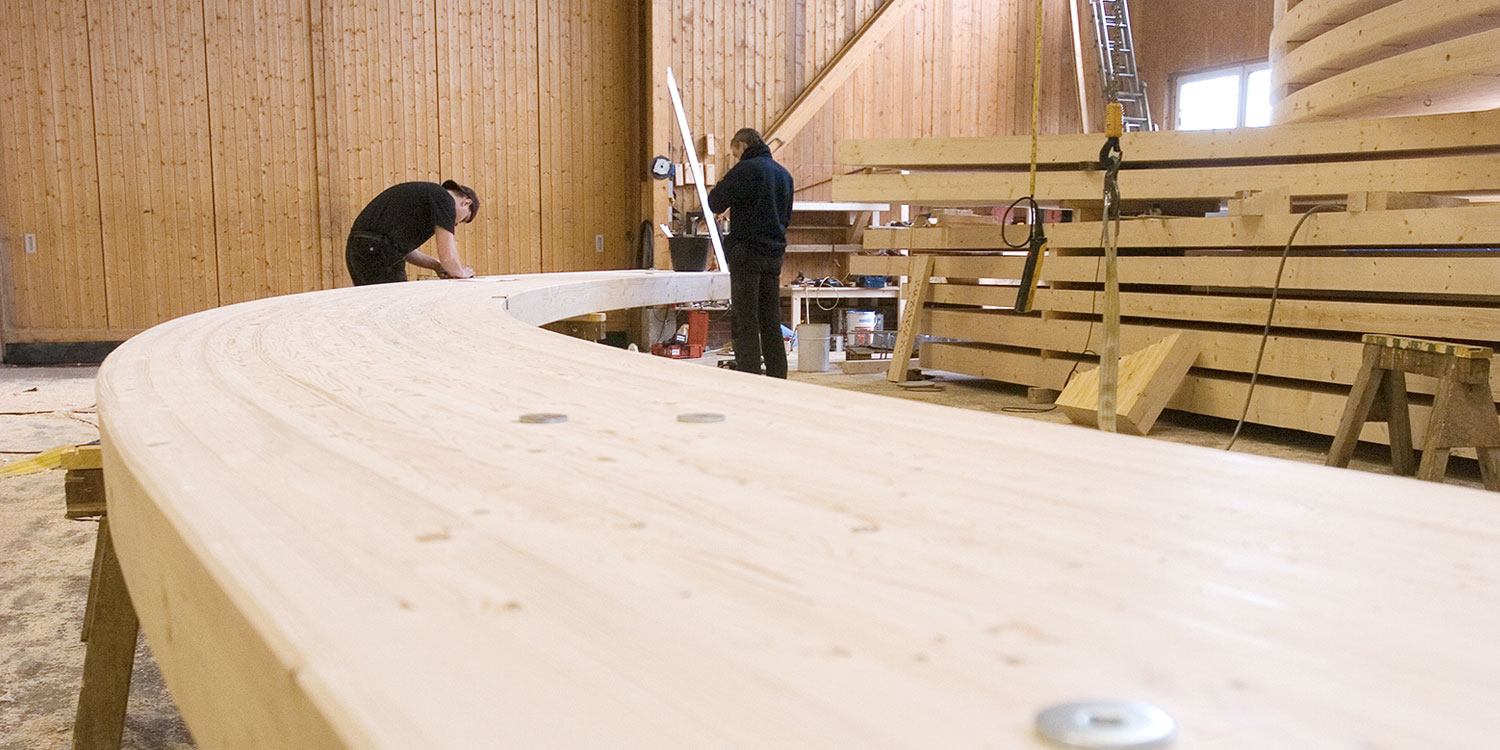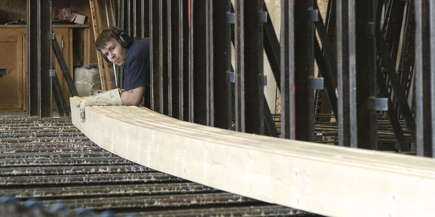 Mit den Jahren sind nicht nur wir gewachsen, auch unser Brettschichtholz ist immer größer geworden. Mittlerweile sind wir in der Lage, tragende Konstruktionen in beeindruckenden Dimensionen zu fertigen. Die hohen Spannweiten und eine außergewöhnliche Formenvielfalt bieten die besten Voraussetzungen für lichte, großzügige Architektur. Durch unser vollautomatisches Pressbett können wir unterschiedlichste Formen produzieren – schnell und effizient. Das bedeutet für Sie: Denken Sie ruhig groß. Wir bringen Ihre Ideen in Form und verleihen ihnen die nötige Tragfähigkeit.
