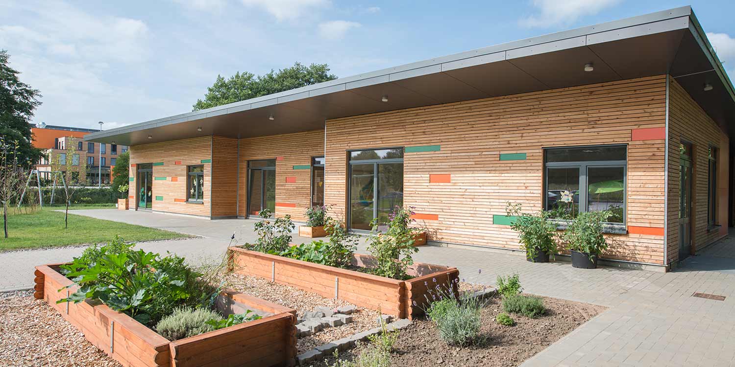 Veränderte Rahmenbedingungen und sich wandelnde Familien- und Arbeitsmarktstrukturen haben in den letzten Jahren den Bedarf und die Ansprüche an Kindertageseinrichtungen stark verändert. Das gilt neben den pädagogischen Konzepten vor allen Dingen auch für die bauliche Gestaltung. Denn sie bestimmt über Raumakustik, Raumklima, gesundheitsförderliche Raumgestaltung und intelligente Nutzungskonzepte. Mit anderen Worten: über das tagtägliche Wohlgefühl für Kinder, Erzieher und Eltern. Kein Wunder also, dass gerade bei Kindertagesstätten Holz immer mehr zum Baustoff der Wahl wird.