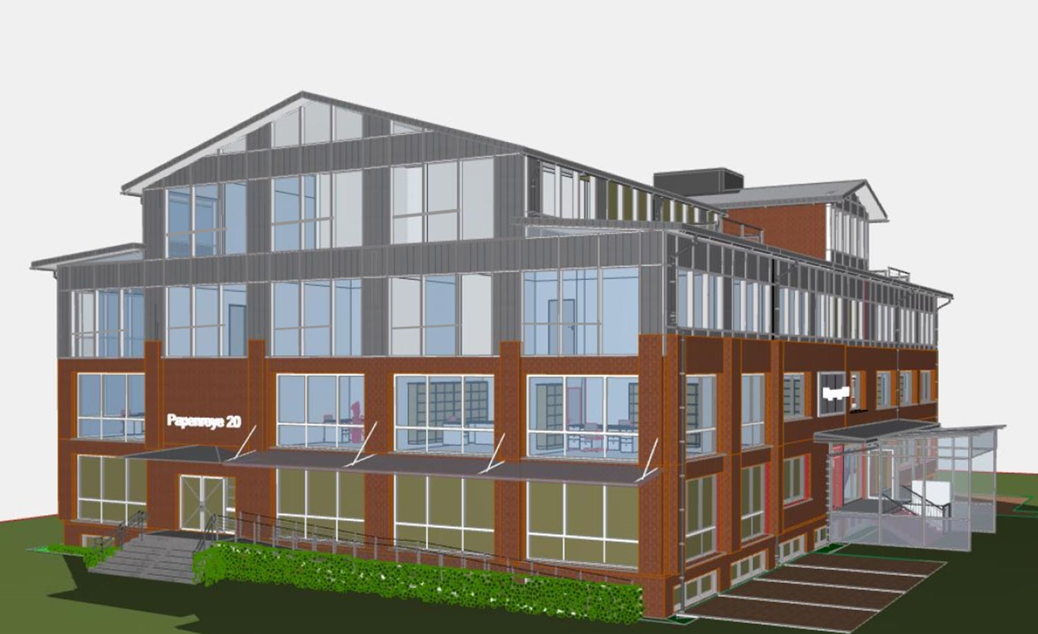 Aufstockung des Bestandsgebäudes in Holz-Hybrid-Bauweise bei laufendem Betrieb.