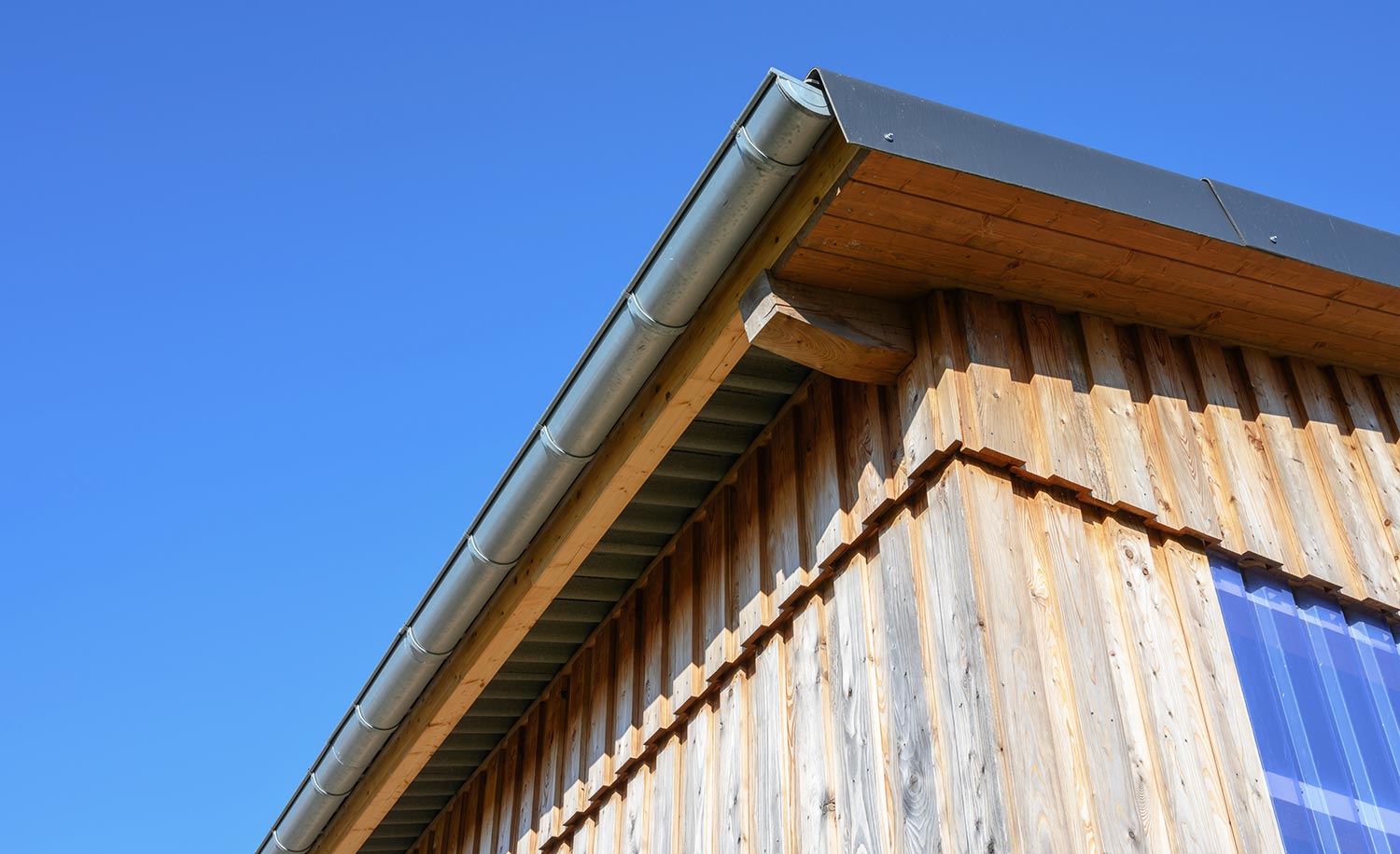 Fassade: gehobelte Lärchenschalung als Deckelschalung