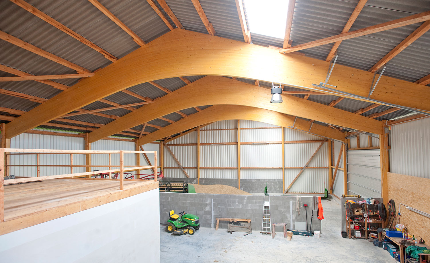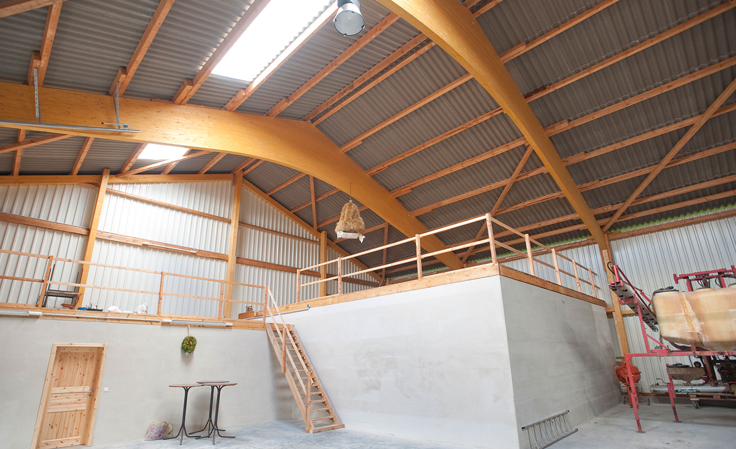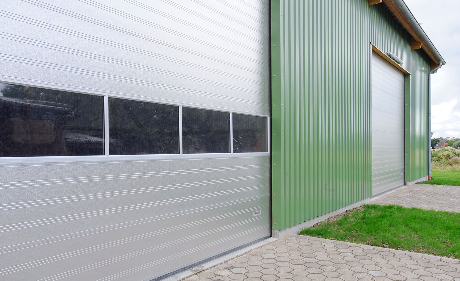 Die neugebaute Lagerhalle dient zum einen als Schüttgut-Halle, in der sich Getreide trocken lagern lässt, und zum anderen zum wettergeschützten Parken des landwirtschaftlichen Fuhrparks. Zwei große Deckengliedertore mit E-Antrieb ermöglichen das Ein- und Ausfahren mit den Landmaschinen.