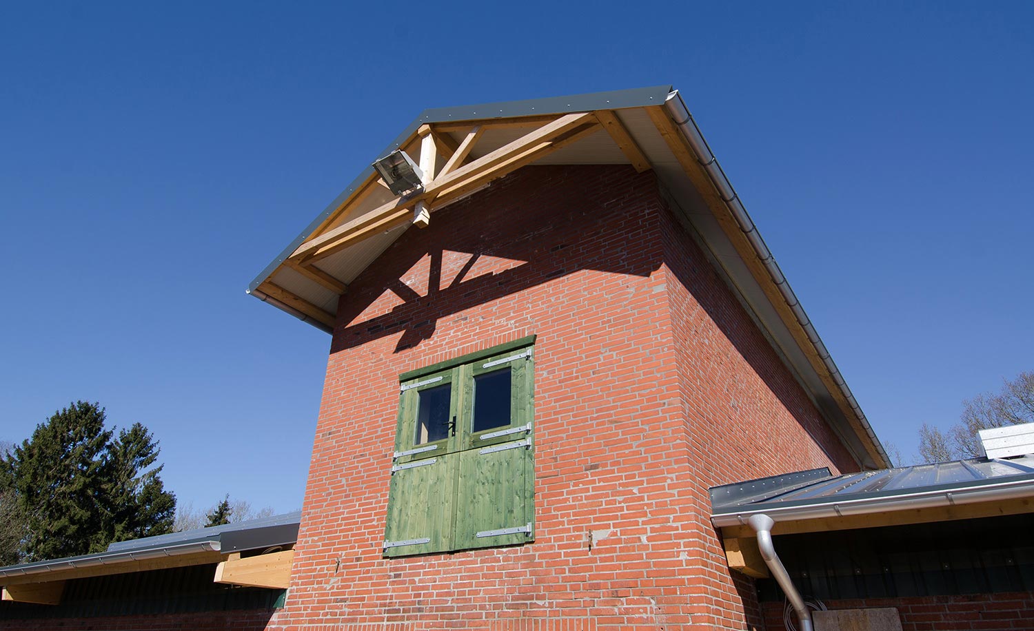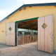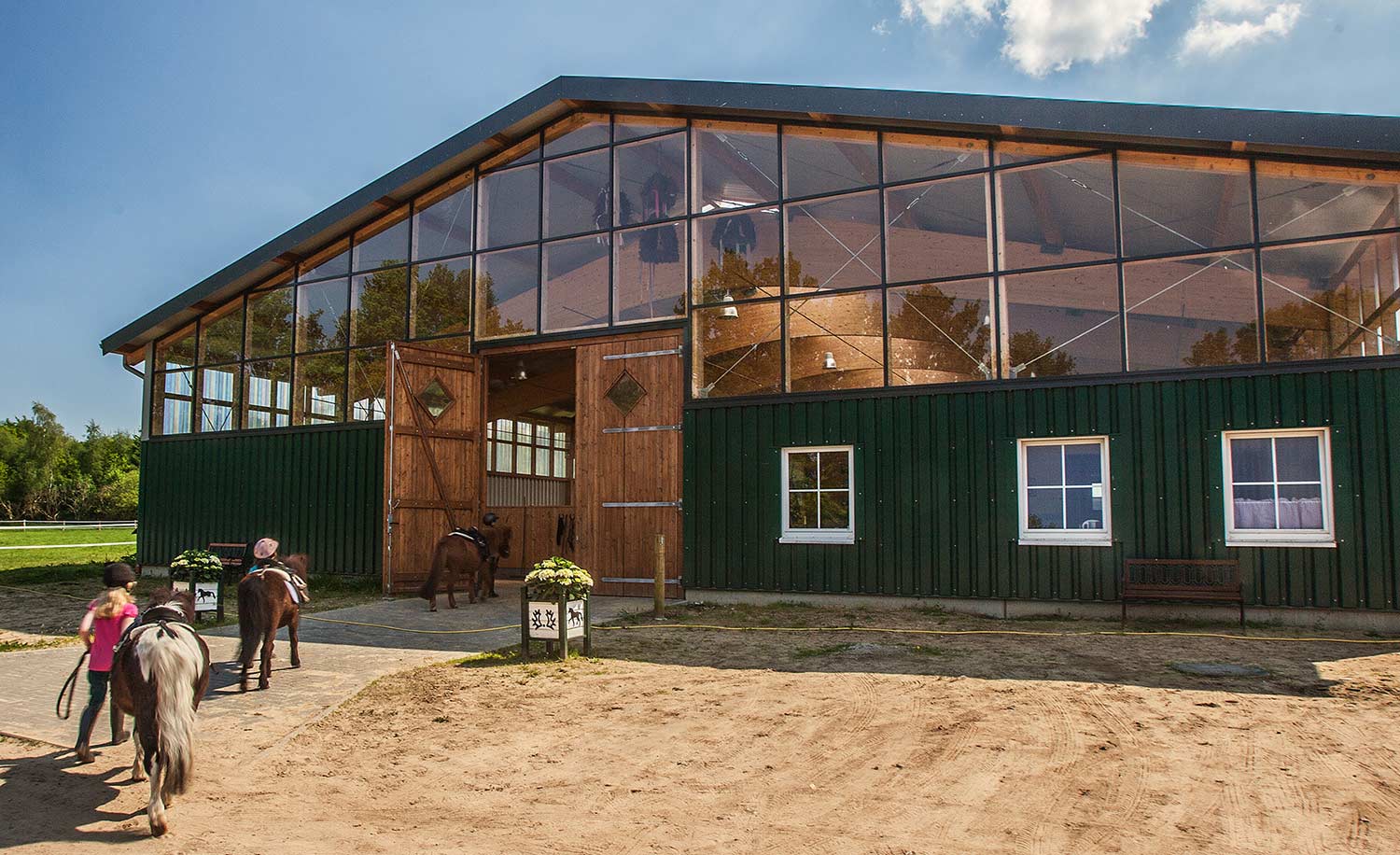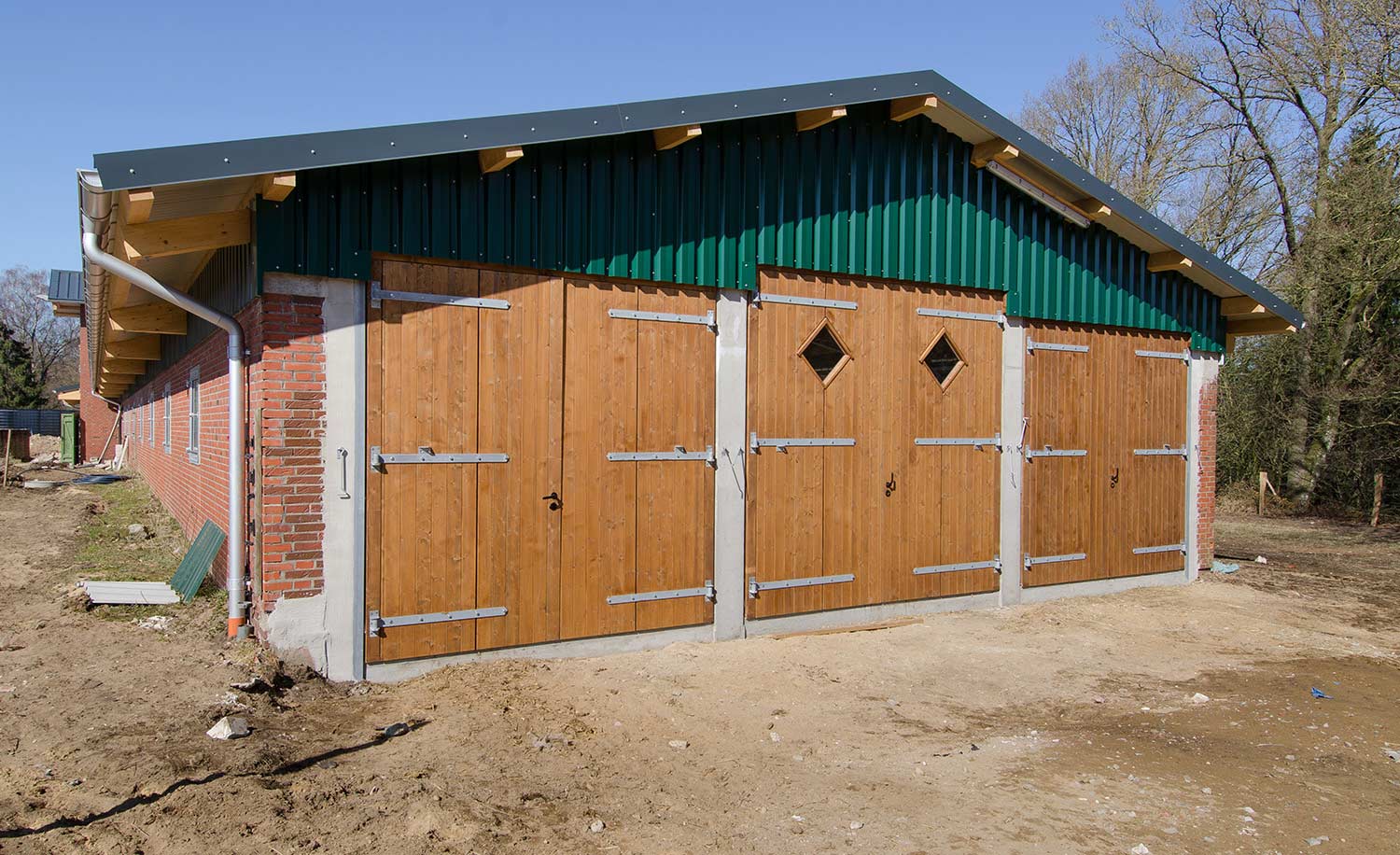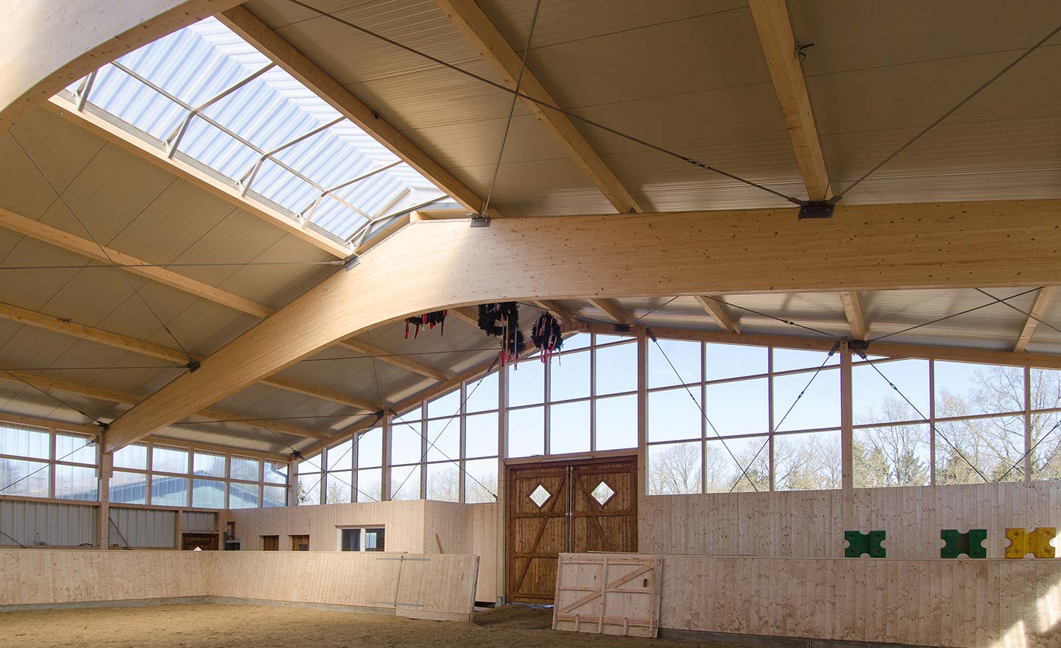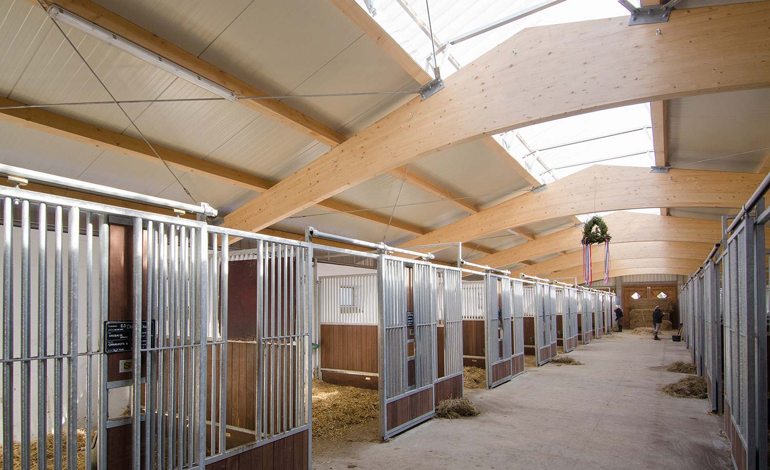 Realisation mit Satteldachbinder, inkl. Kopfbau und Stallsanierung, Hufschlag 20,00 x 45,50 m, Auftraggeber: Thode, Gut Springhoe