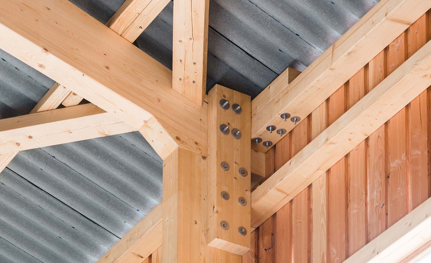 Schüttwände aus BSH-Riegelkonstruktion, Fassade mit Lärchen-Deckelschalung, Auftraggeber: Plus Pohl GmbH