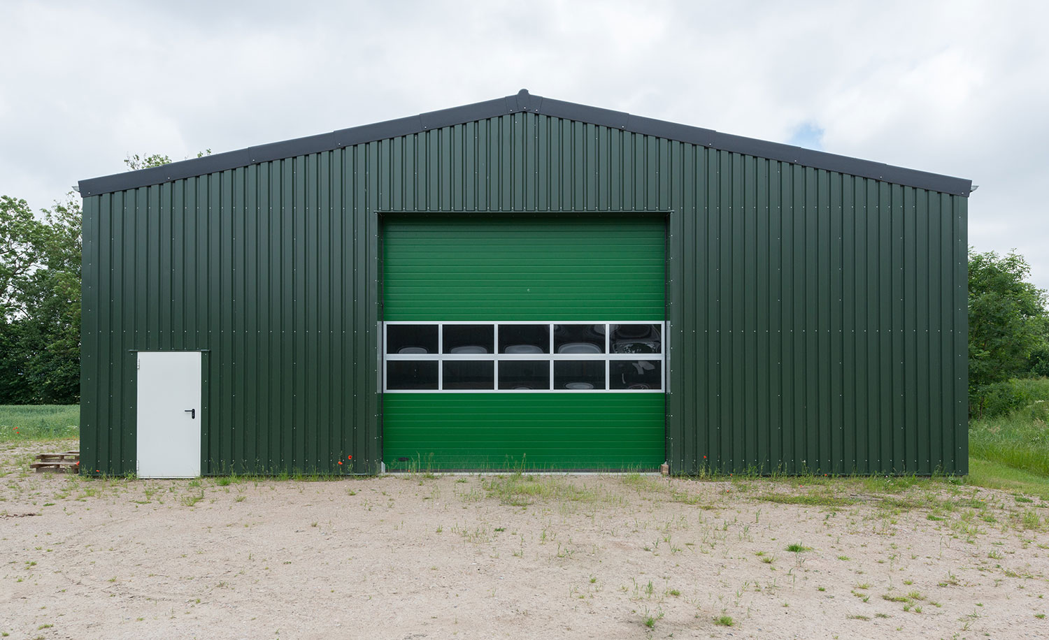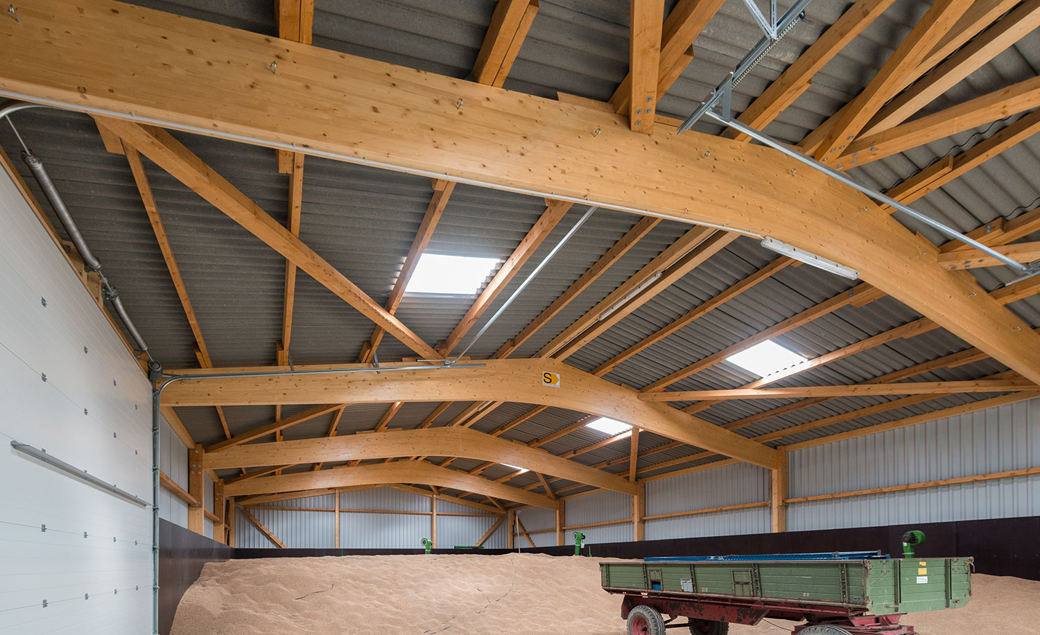 Auf 450 m² bietet die Halle Raum sowohl zur Lagerung von Schüttgut als auch zum Unterstellen der Fuhrmaschinen. Damit die Gebäudehülle unbeschädigt bleibt, wurden an rund 70 laufenden Metern Schüttwände errichtet. Damit lassen sich Güter problemlos bis zu zweieinhalb Meter hoch an die Außenwände schütten. Der Fuhrpark kann über zwei Sektionaltore ein- und ausfahren.